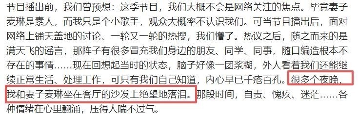 他原本以为这只是一档关注度有限的情感观察节目,自己作为过气歌手搭配素人妻子,大概率不会掀起太大波澜。