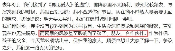 他坦言,《再见爱人》带来的不仅是曝光,更是一场席卷全家的网络风暴,让原本就紧张的家庭关系雪上加霜。
